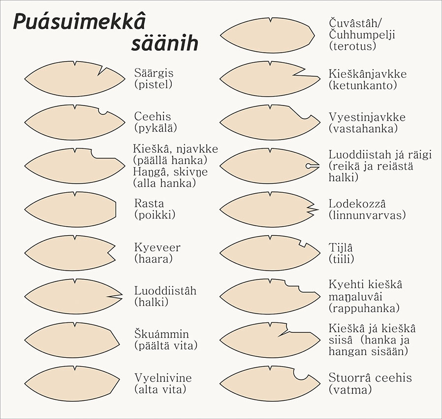 Puásuimeerhâi säänih kovvejuvvoo sehe kuuvijn já sánálávt. Jyehi puásuimerkkâ lii jieijâslágán kuálus jieškote-uvlágán saanijn. Peljimerkkâ luuhâm álgoo uálgis peeljist, peelji keejist maddui. Kiävtust meerhah láá suullân 12 000.